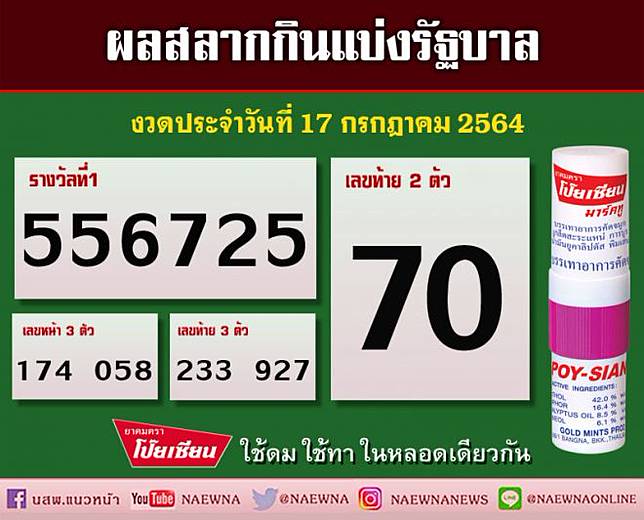 ตรวจสลากกินแบ่งรัฐบาล ตรวจหวย 16 กรกฎาคม 2564 ตรวจหวย ผลสลากกิน.