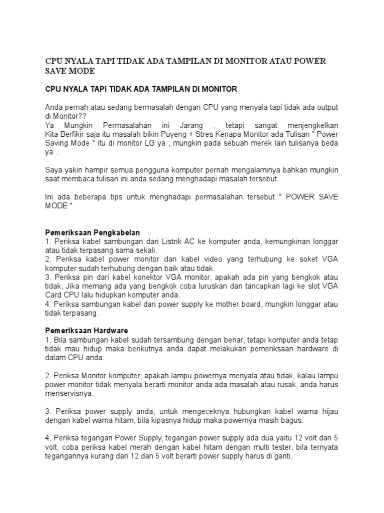 Istilah komputer menyala tapi tidak tampil pada layar monitor ini bisa juga dikatakan pc tidak mau booting alias tidak menampilkan apa apa pada layar monitor anda yang berarti menandakan ada komponen pc yang trouble. Tapi untuk mencari tahu hal itu kamu juga harus mengetahui tips dan trik di artikel ini, supaya bisa diatasi tanpa kamu harus membawa laptop ke tukang servis. Cara memperbaiki laptop yang tidak bisa masuk windows penyebab dan mengatasi komputer mau hidup 6 mati nyala multimediaplasa hp tapi lampu power data nyalain tanpa tombolp / 5. Tidak mau boot ini berarti komputer menyala (kipas cpu berputar) tapi tidak muncul layar booting, ya? Kemungkinan power supply sudah rusak.